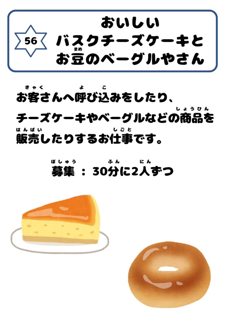#56 おいしいバスクチーズケーキとお豆のベーグルやさん 投稿日: 2026年2月11日 投稿者: mayu タグ: 食べ物 【ご協賛企業】granjapon@granjaponはちみつティーなどスペイン食材を中心に、輸入販売・卸を行う 【関連するお仕事】 #62 クレープ屋(キッチンカー) #05 ドリンク店 #59 カレー(キッチンカー) #55 パン屋(キッチンカー) #63 カフェ #60 焼きそば(キッチンカー) #58 ピザ屋さん #57 たまプラーザ名店街 #61 たこ焼き(キッチンカー) < お仕事一覧に戻る