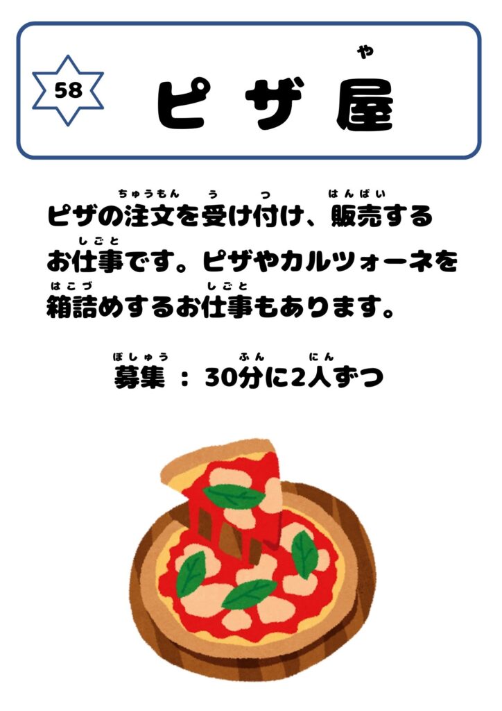 大きなお子様には、 ピザを切って箱に入れたり、カルツオーネを袋に入れたりの体験もして頂き ます。