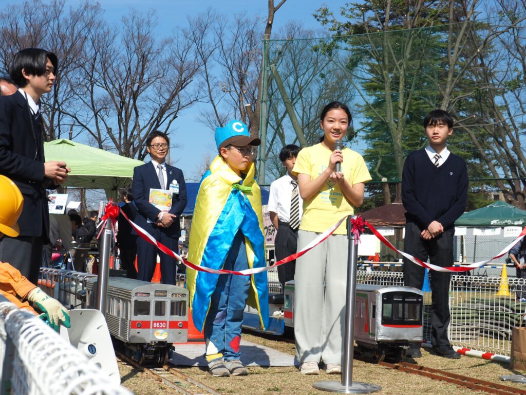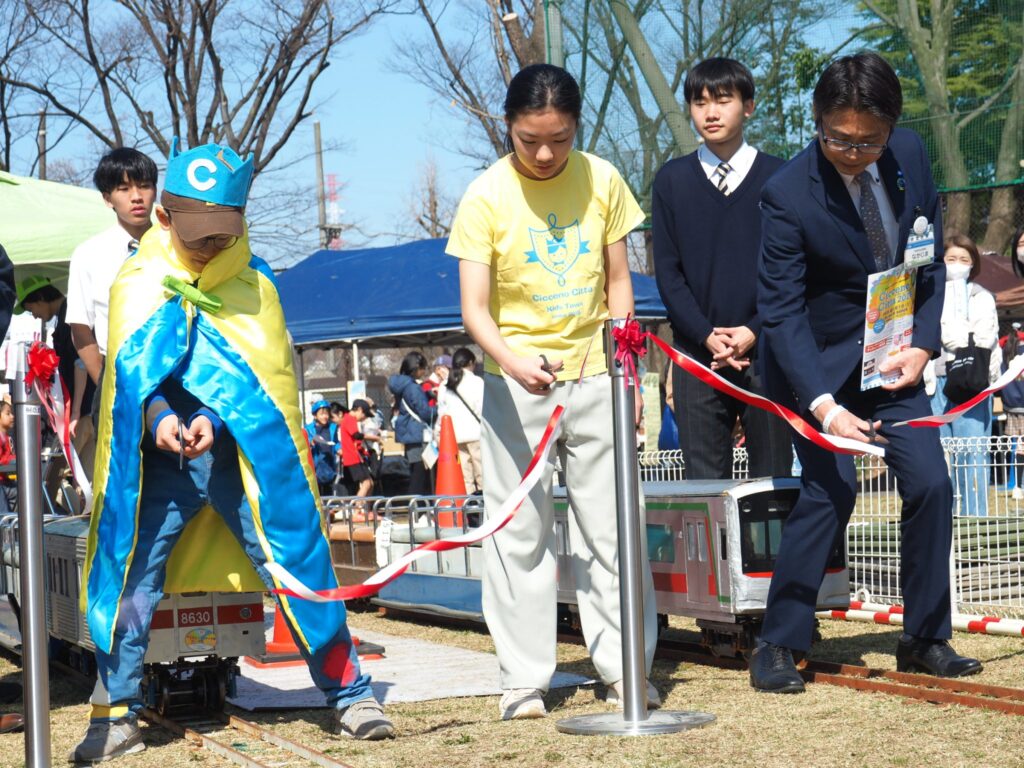 桐蔭学園鉄道研究部による「くろがねの森鉄道チッチェーノ・チッタ線」の開通式。