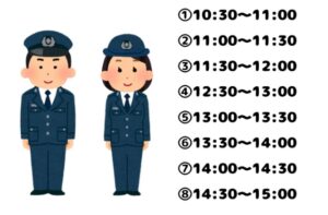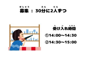 ②お仕事が始まる10分前に職業訓練所に集合 ※銀行、税務署、映画館は15分前